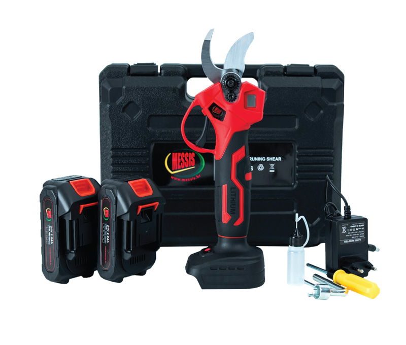 - Izmjenjivost baterija jamči cjelodnevnu autonomiju rada s vremenom punjenja baterija od 1,5 do 2 sata. Zbog male težine i ergonomskog rukohvata izrazito učinkovite prilikom rezidbe vinograda, voćnjaka, parkova i nasada.
