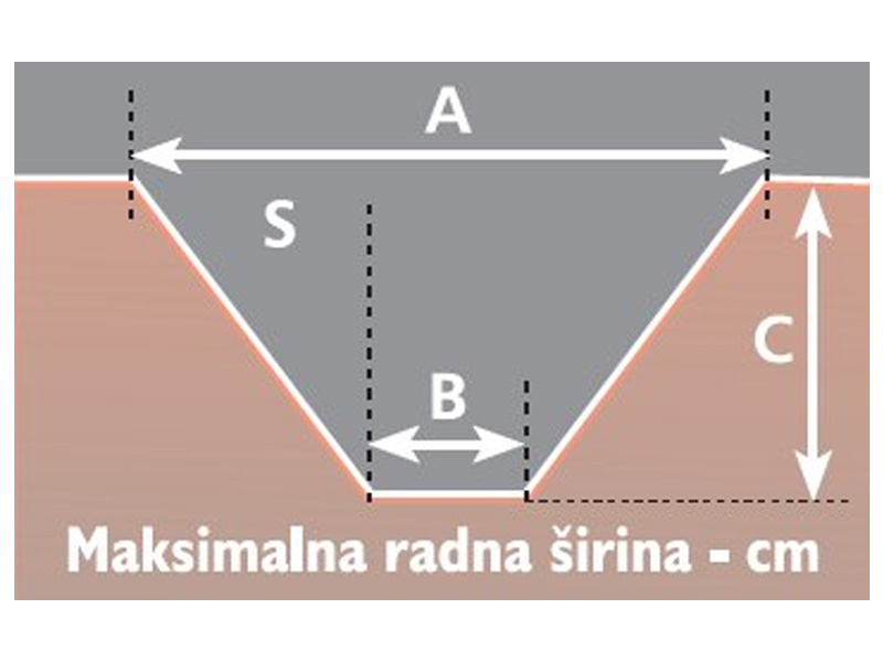 L / Maksimalni otklon u stranu od središnje osi traktora do sredine kanala