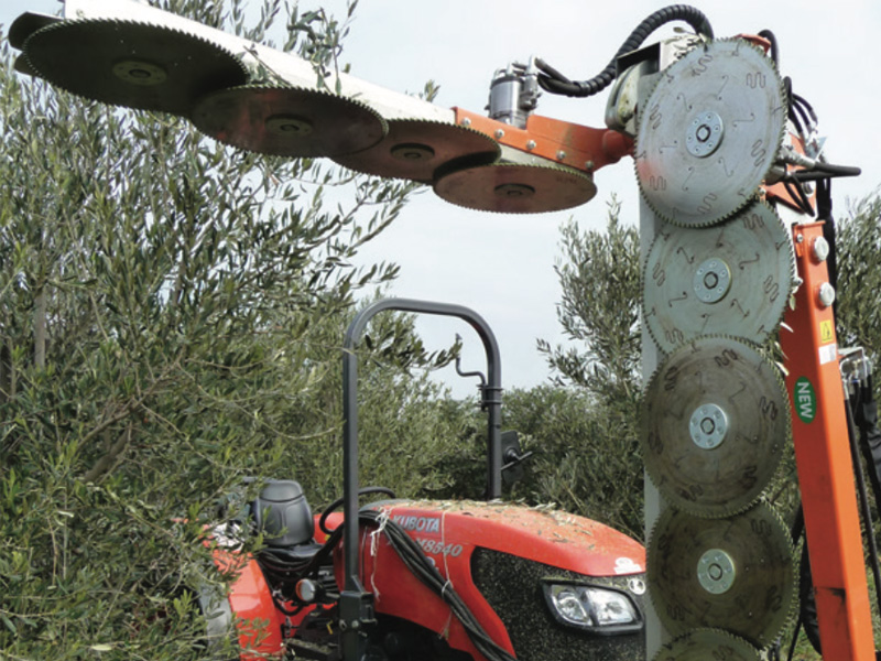 Okomiti i vodoravni gredelj sa kružnim pilama - diskovima, maksimalna debljina rezanja granja Ø 10 cm...