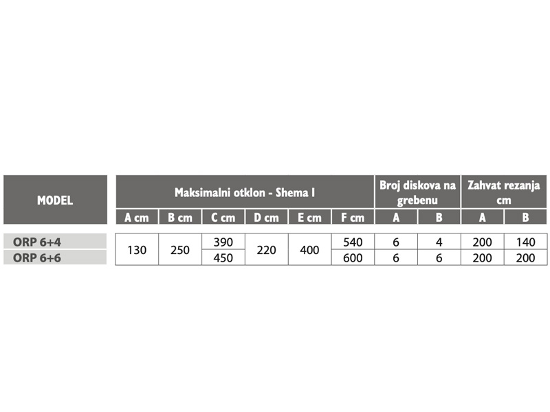 - Okomiti i vodoravni gredelj sa kružnim pilama - diskovima (zubi sa umetcima – pločicama vidia”) za modele ORP B1I LR 6+4 i ORP B1I LR 6+6