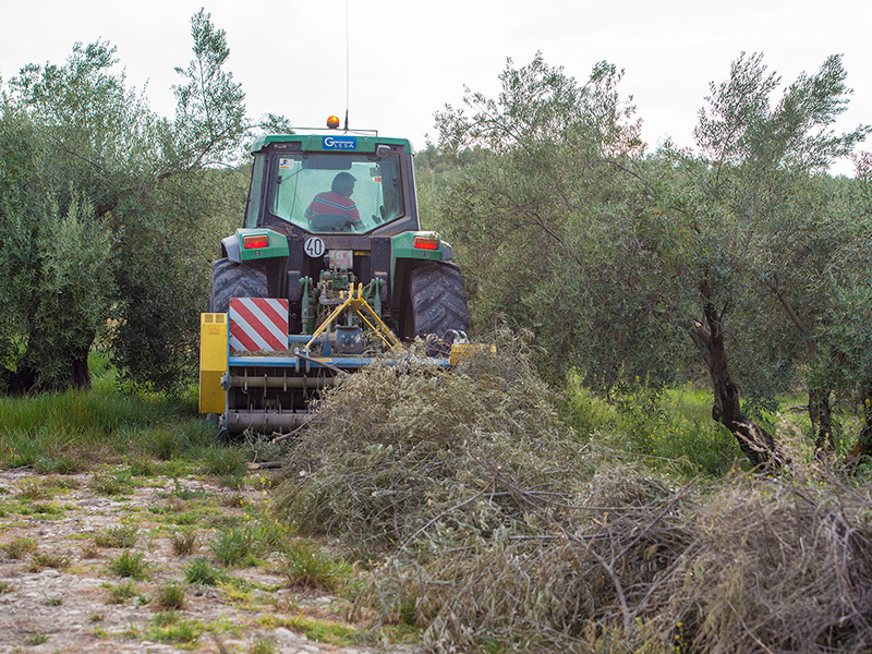 Za usitnjavane ostataka (granja, šiblja i drugih biljnih ostataka) nakon rezidbe u voćnjacima, maslinicima, šumama, parkovima i dr. Prednji udvojeni rotori pridižu sa zemlje i uvlače granje (biljne ostatke i dr.) u unutrašnju komoru za usitnjavanje. Drugi rotor sa radnim tijelima - čekićima usitnjava masu i polaže na zemlju.