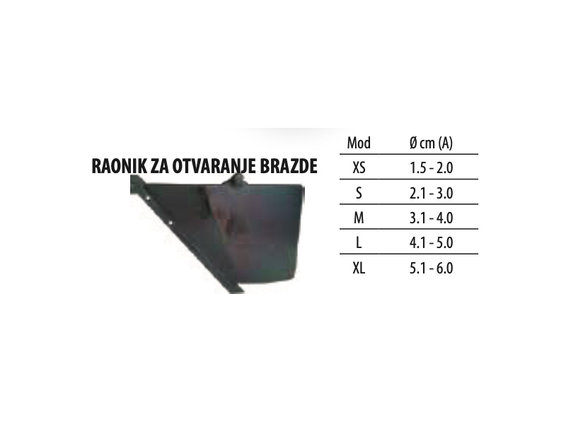- Raonik za otvaranje brazde s brzim otkopčavanjem (uski - standard - srednji - široki) (prilikom narudžbe navesti mjere presadnica prema shematskom prikazu radi odabira raonika) Slika 2