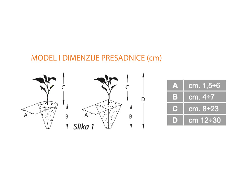 - Poluautomatske sadilice namijenjene su za sadnju presadnica sljedećih karakteristika: - presadnice, konusne, piramidalne Slika 1
