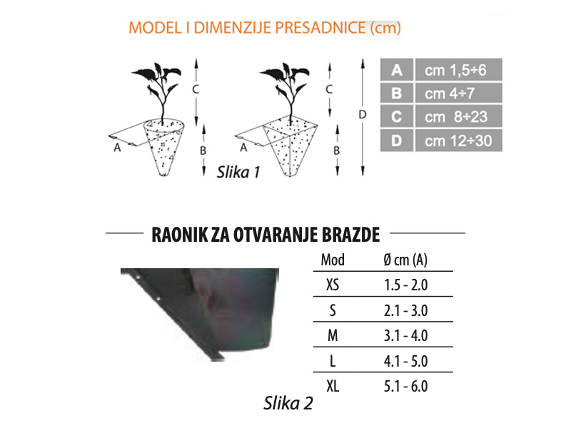 - Primjena: sadilice presadnica su namijenjene za optimizaciju presađivanja presadnica s konusnim ili piramidalnim korijenom-grudom promjera do 6 cm - Slika 1