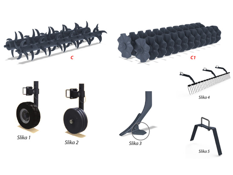 Centralni kultivatorski sklop s motičicama po izboru, letvičasti valjak, grubber motičica...