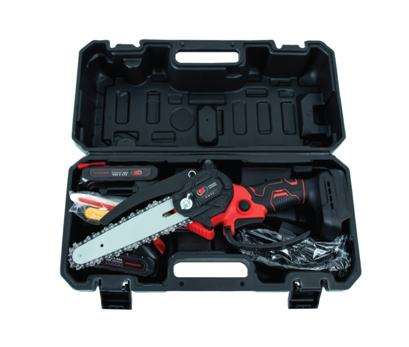 - Baterijska lančana pila TY opremljena je sa 2 izmjenjive LI-ION baterije s brzim punjenjem, alatom za održavanje, punjačem baterija, rezervnim lancem i originalnim koferom.